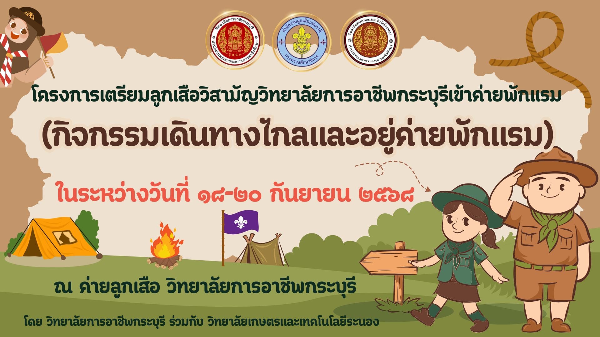 📣📣โครงการการฝึกอบรมลูกเสือวิสามัญ “หลักสูตรวิชา นายหมู่ลูกเสือวิสามัญ” ในระหว่างวันที่ 18-20 กันยายน 2568 ณ ค่ายลูกเสือ วิทยาลัยการอาชีพกระบุรี